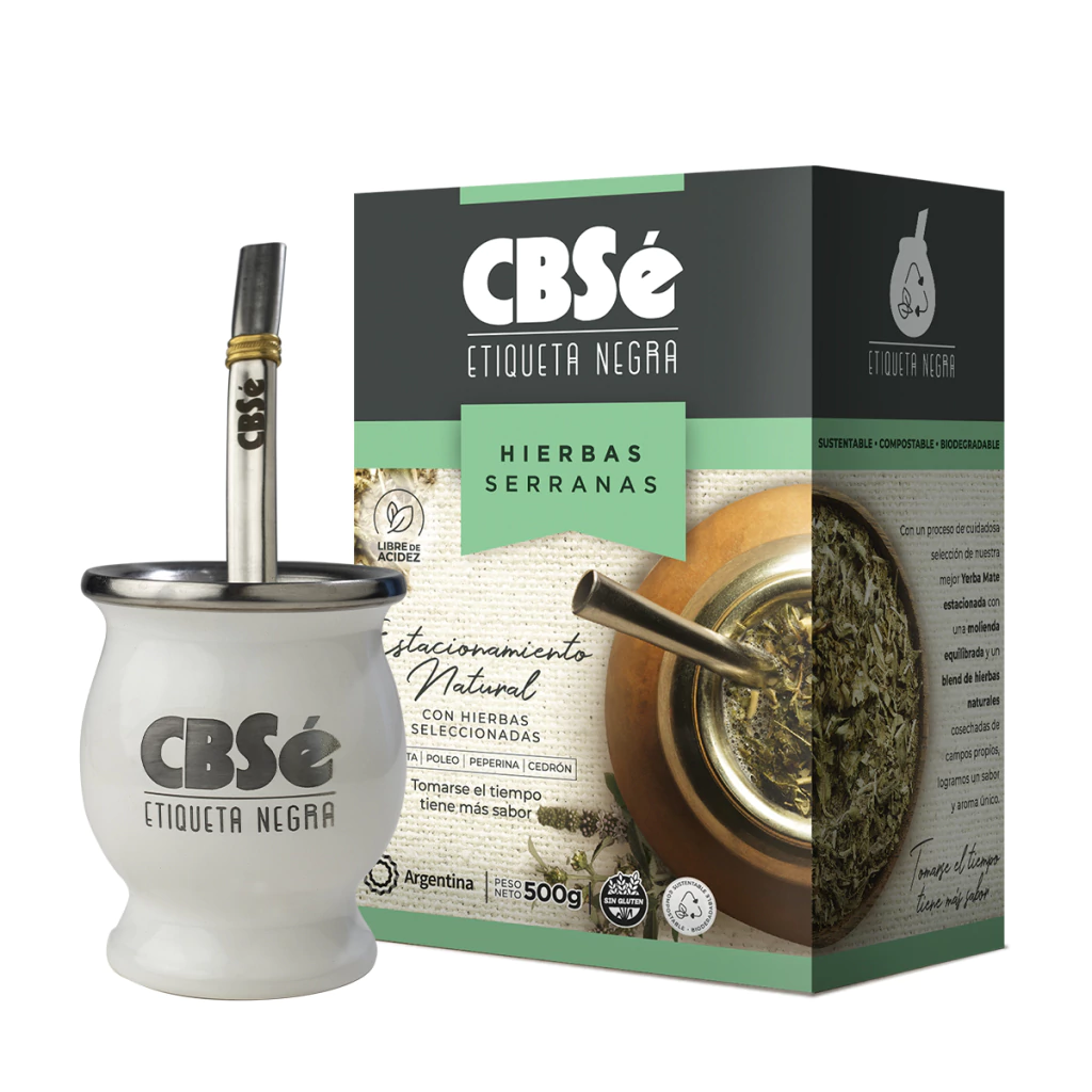 Incluye: 1 Mate Termico  CBSé Etiqueta Negra  + 1 Bombilla CBSé  +  1 pack de CBSé Etiqueta Negra 500 gr.