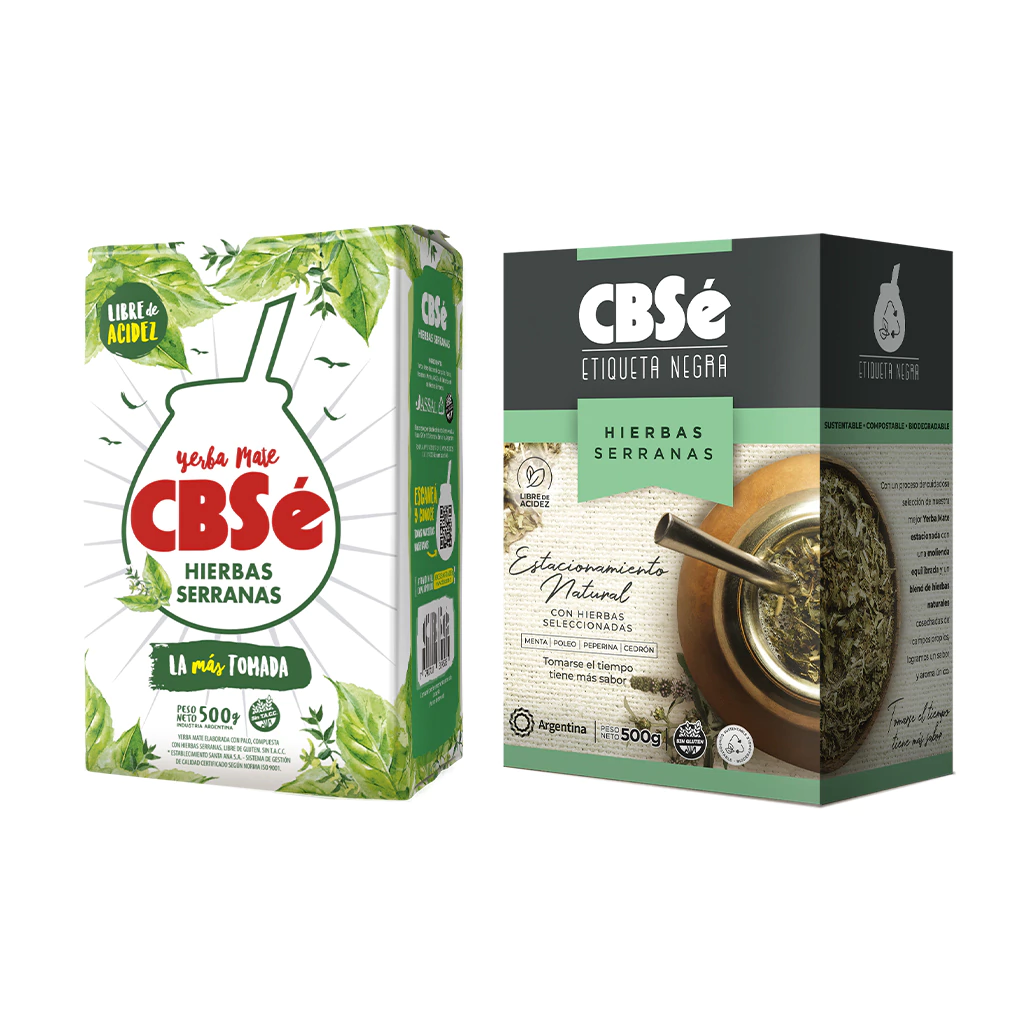 El combo incluye: 1 paquete de CBSé Hierbas Serranas x 500 gr + 1 paquete de CBSé Etiqueta Negra x 500 gr.